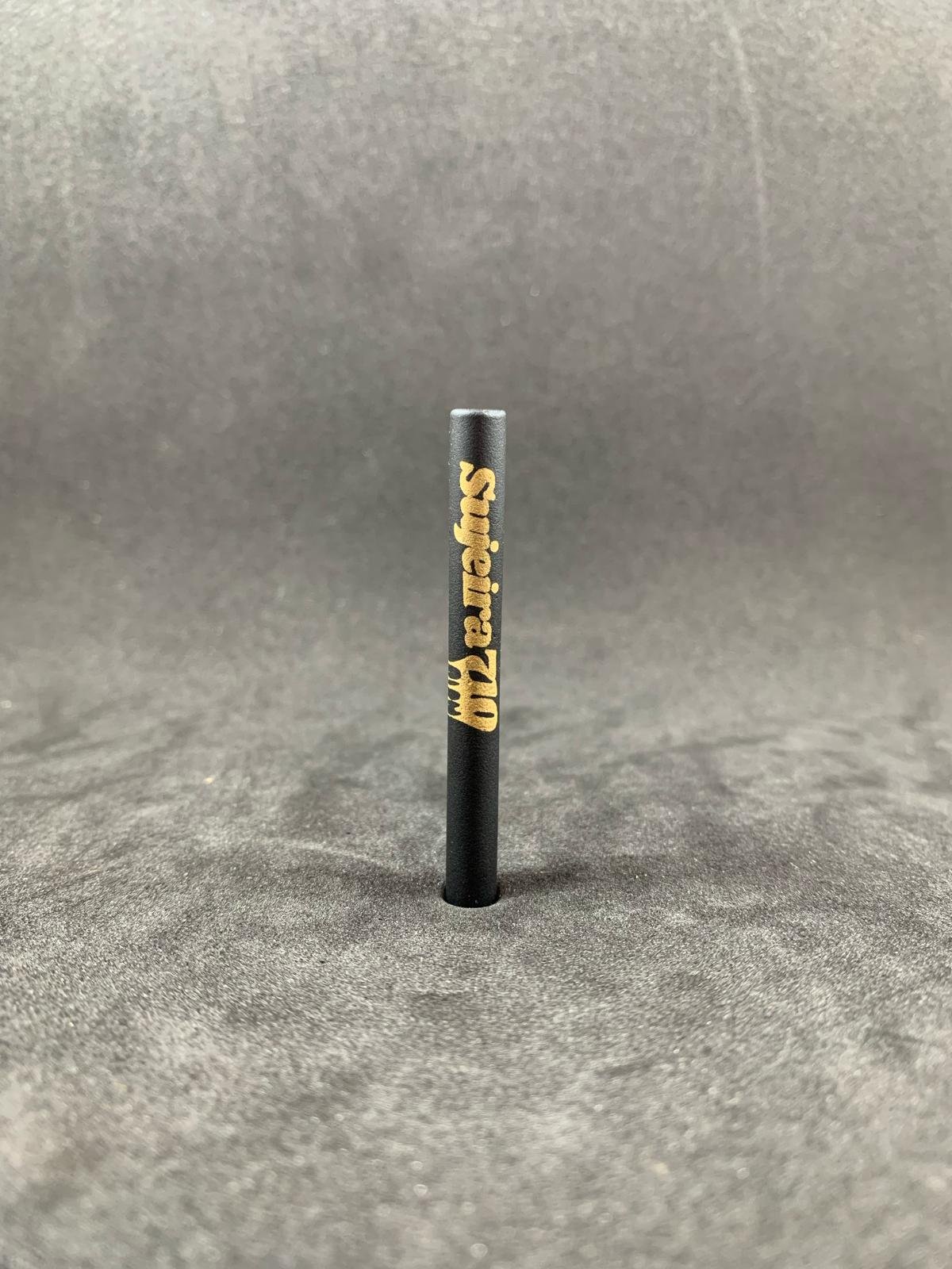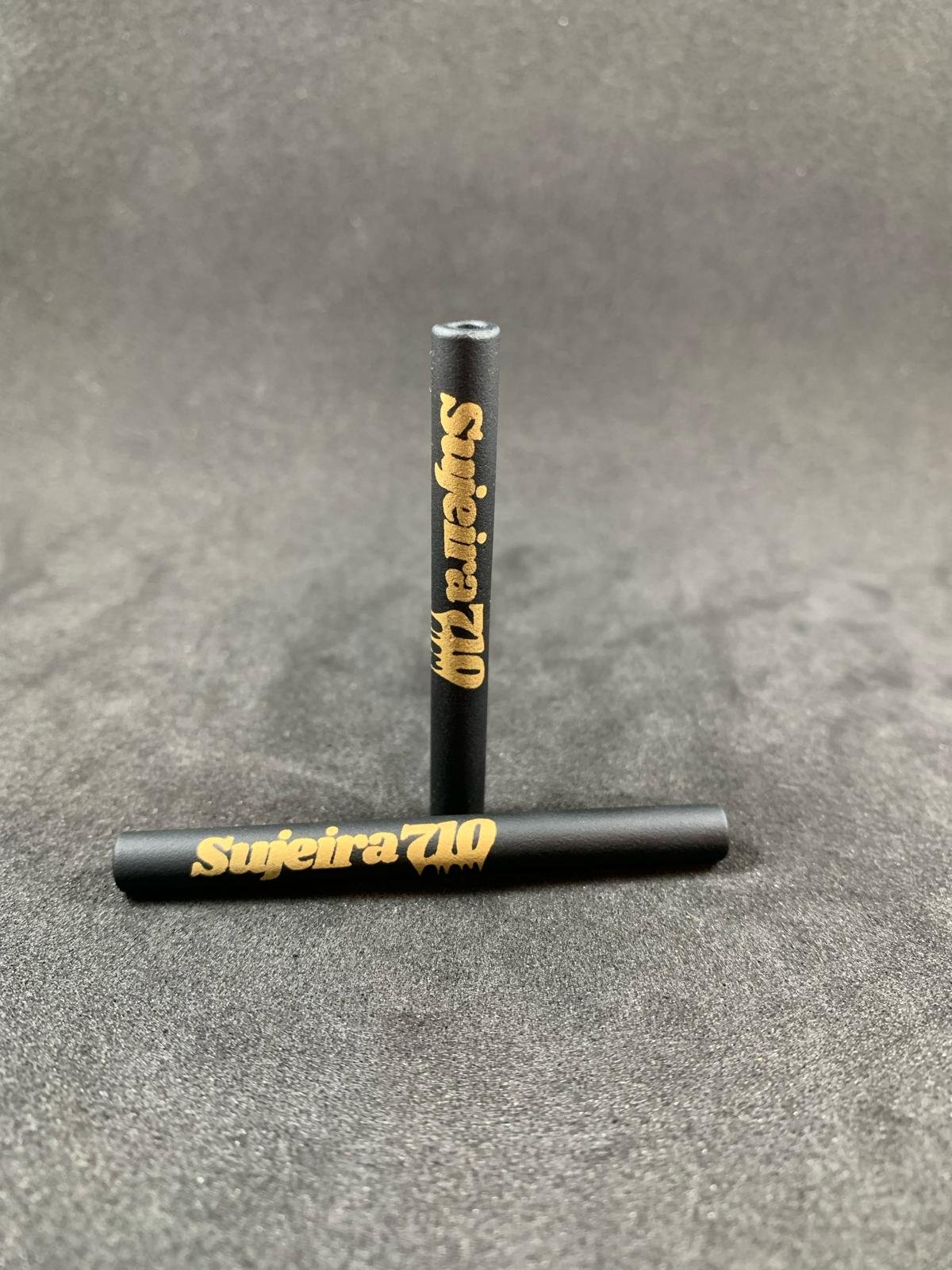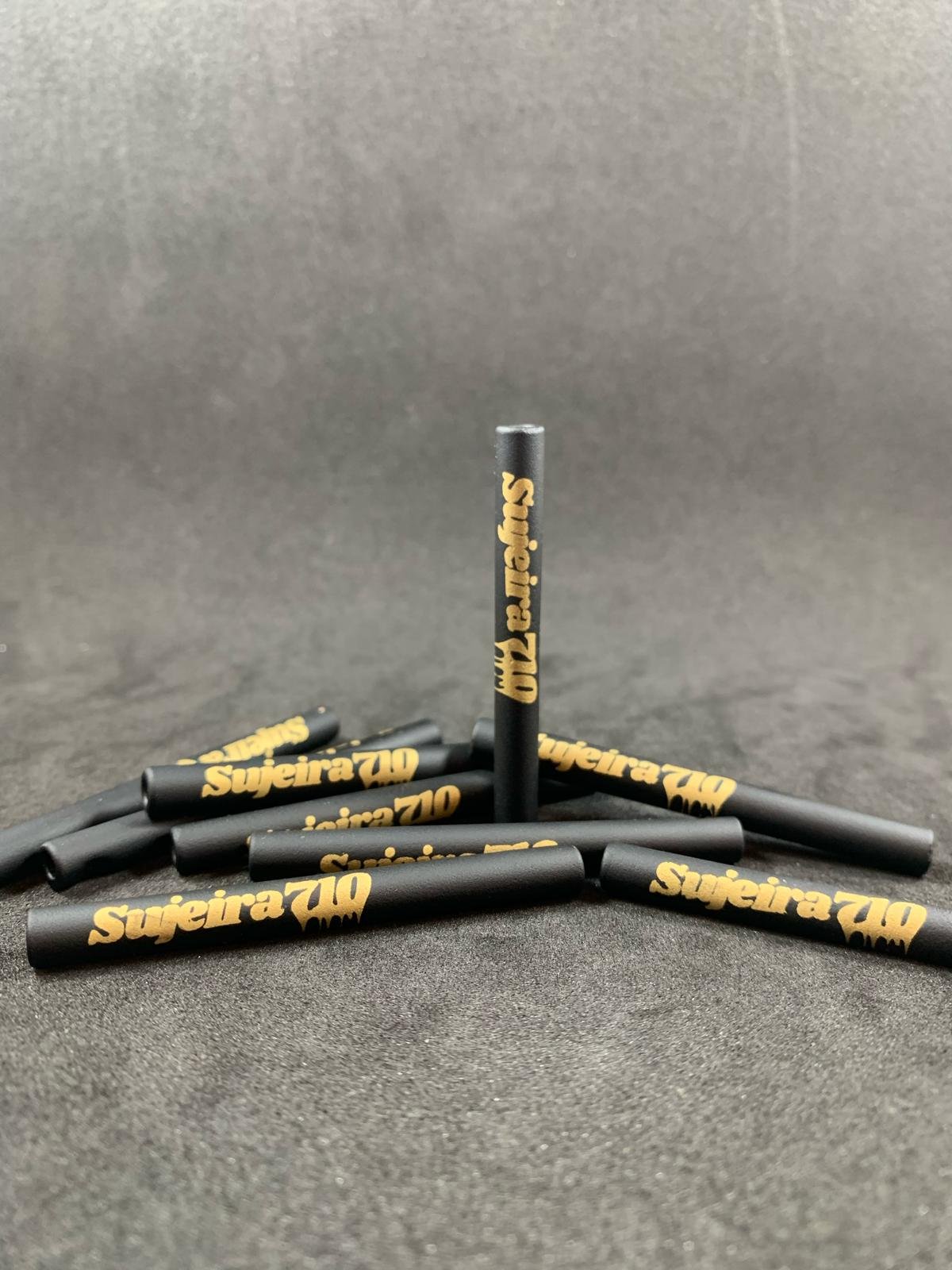 Piteira de vidro preta premium, com decalque em ouro 18K, que agrega sofisticação e exclusividade à peça.